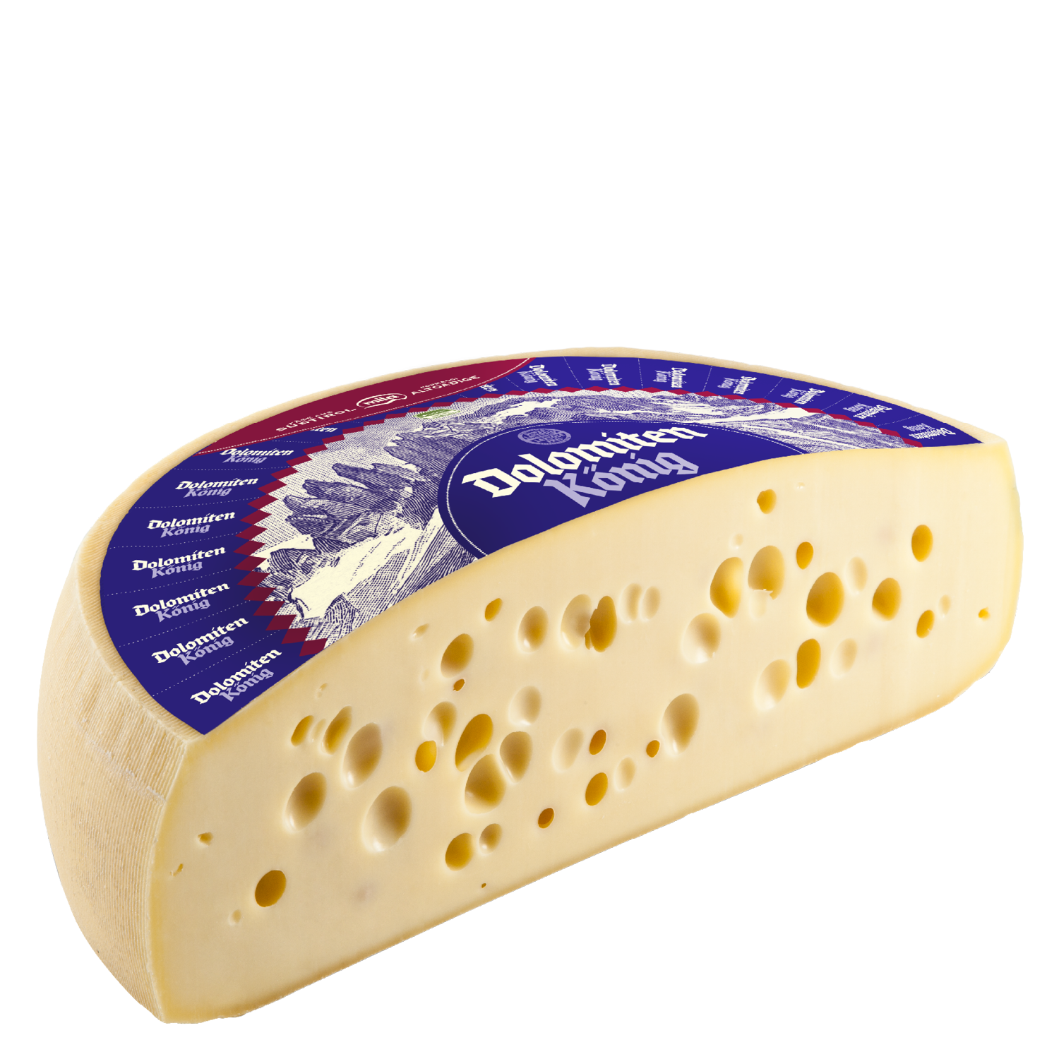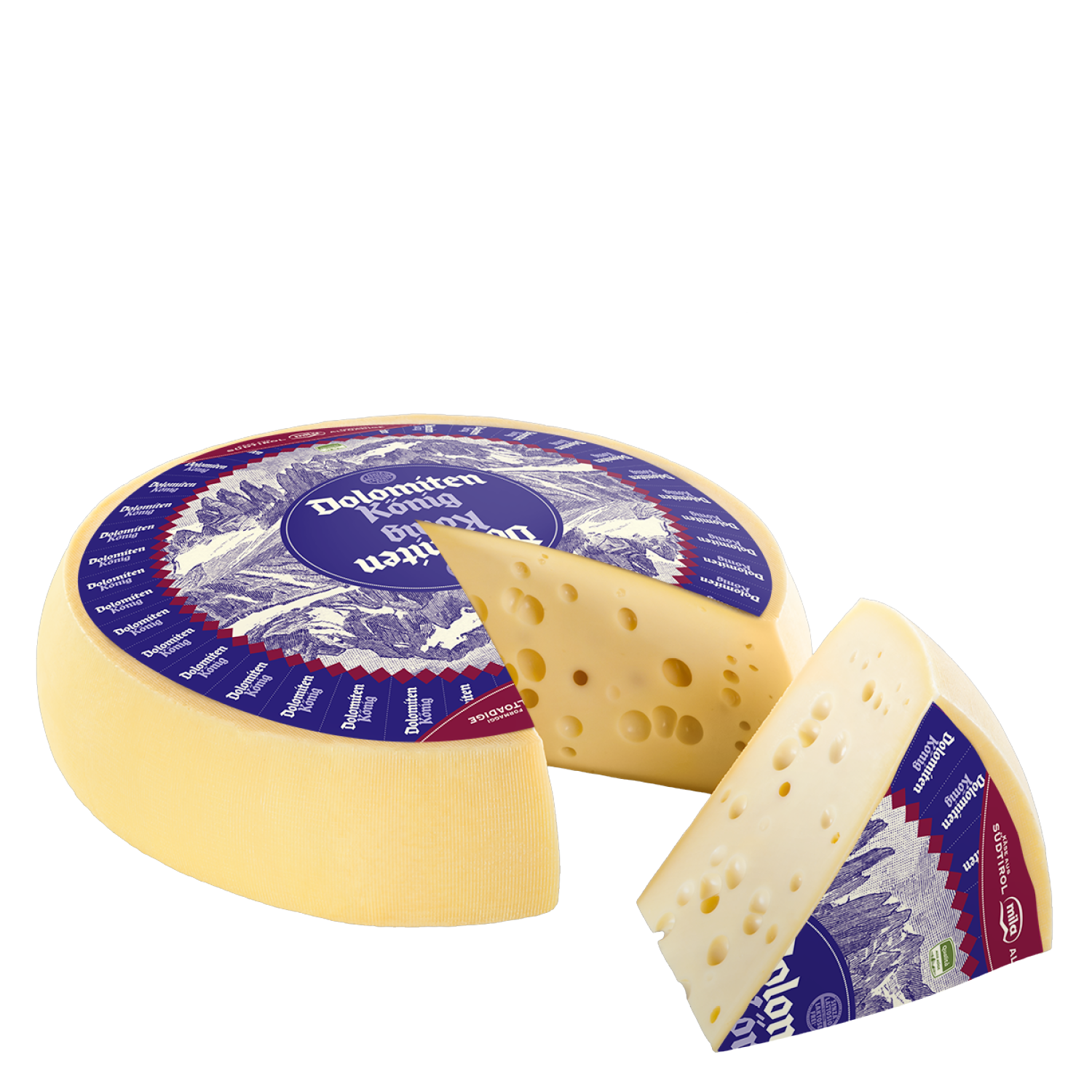 Wie sein Name schon verrät, ist der „Dolomitenkönig“ ein besonderer Genuss, in dem sich beste Südtiroler Bergmilch und traditionsreiches Käsehandwerk vereinen. Er wird von einer grifffesten, leicht rauen Rinde umschlossen. Das Innere des Käses ist hellgelb bis strohgelb und hat eine kirschgroße Lochung. Die Konsistenz im Gaumen ist kompakt, aber trotzdem weich und geschmeidig. Der Geruch des Käses ist komplex und leicht süßlich, sein nussig würziges Aroma und die feinen Honignoten entfalten sich am Gaumen in voller Pracht.